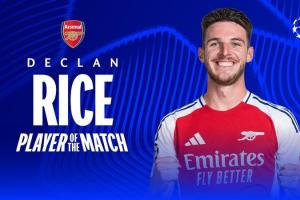 体育资讯4月9日讯 欧冠1/4决赛首回合,阿森纳主场3-0完胜皇马。赖斯在本场比赛任意球梅开二度,当选全场最佳球员。
